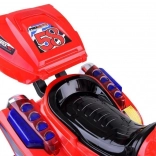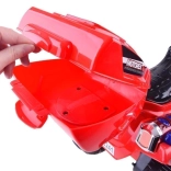 La commande est simple : démarrage par bouton ON/OFF avec son réaliste de moteur, accélérateur au pédale et frein électrique automatique à la relâche. Les enfants apprécieront les mélodies joyeuses, les rétroviseurs latéraux, la bulle transparente et le petit coffre bien pratique.