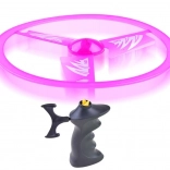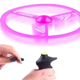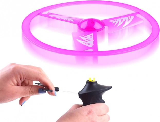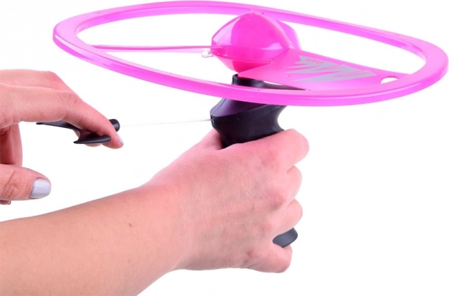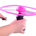 L’utilisation est simple : placez le disque sur la poignée, tirez sur la cordelette et regardez l’« OVNI » rose s’élever. Idéal pour développer les capacités de coordination, bouger et jouer ensemble.