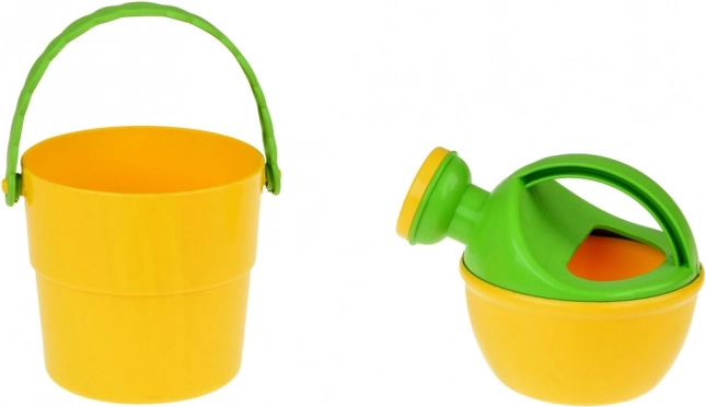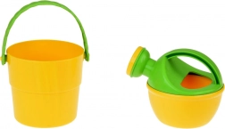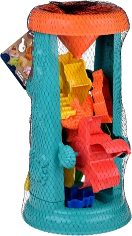 Il y a aussi un arrosoir pour durcir le sable, ce qui stimule la créativité et l'imagination des enfants. Les moules de différentes formes permettent de créer et construire des châteaux, encourageant ainsi le développement de la motricité fine.