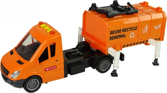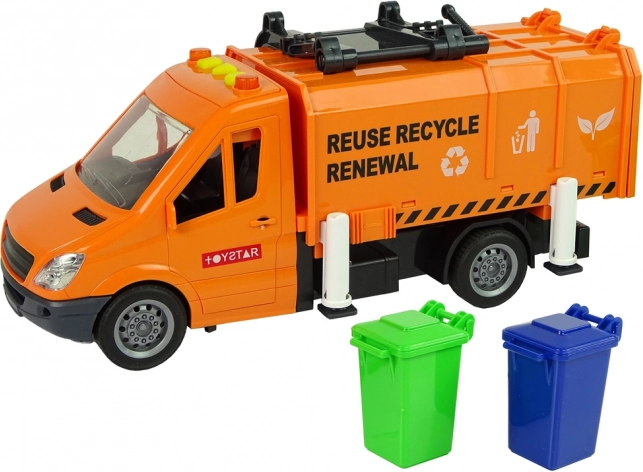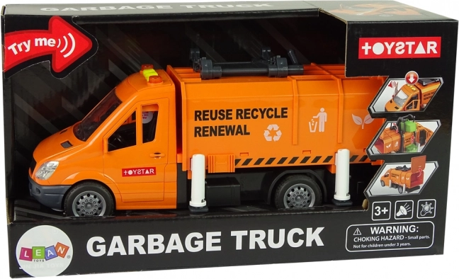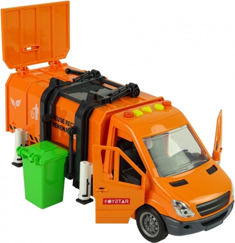 Offrez aux enfants leur propre camion-benne pour apprendre le tri des déchets et les bases de l’écologie. Le modèle orange propose un mécanisme à friction, une remorque ouvrante, un dispositif de levage pour la poubelle et des effets sonores réalistes (marche arrière, avertissement, chargement). Sa fabrication en plastique de qualité, les deux bacs inclus et l’alimentation par AG13 en font un jouet éducatif idéal dès 3 ans.