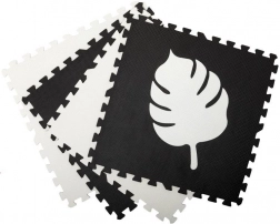 Le tapis MoMi FELI comprend 16 éléments : 4 puzzles, 4 feuilles et 8 bordures. Chaque puzzle mesure 60 x 60 cm.