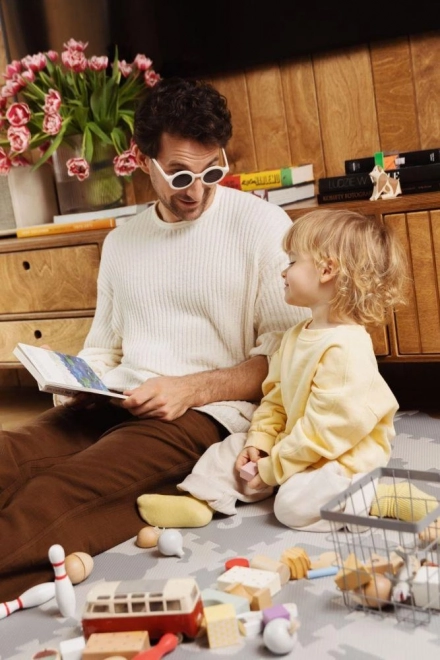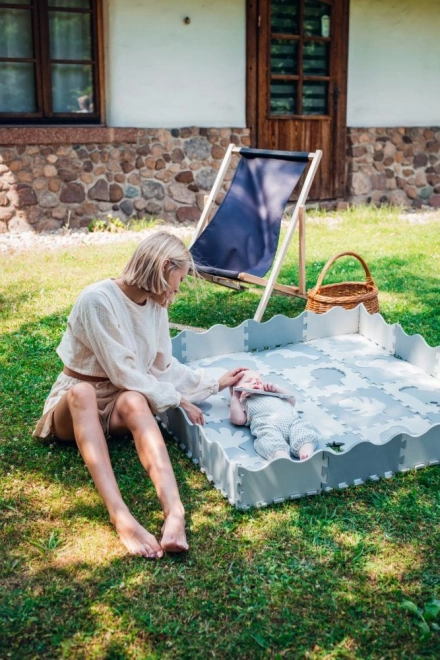 Le tapis en mousse MoMi ZAWI est un produit multifonction. Il s’agit d’un tapis standard protégeant l’enfant du froid pendant le jeu, d’un parc de jeu et d’un jouet sous forme de puzzle 3D classique.