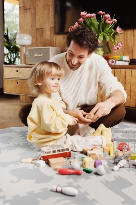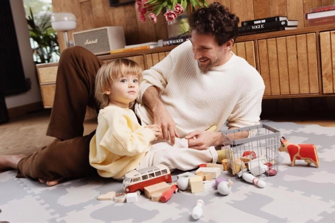 Le tapis offre de nombreuses possibilités de jeu : il peut être utilisé comme puzzle classique pour créer des formes en 3D. De plus, les éléments 3D peuvent servir de jouets indépendants.