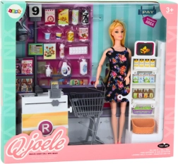 Ce set ludique et éducatif transporte les enfants dans l’univers des achats. La poupée en tenue adorable, l’étagère de magasin, le panier, la caisse et les petits aliments permettent de rejouer diverses situations — de la sélection des produits jusqu’au passage en caisse. Grâce à ses membres et poignets articulés, la poupée peut facilement « saisir » les produits et les déposer dans le panier.