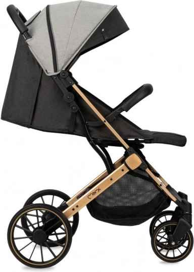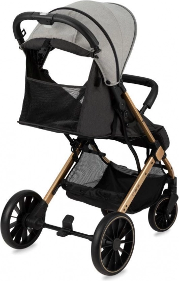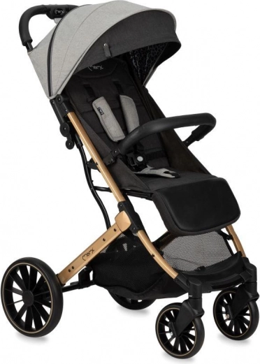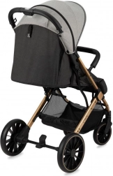 La poussette est équipée de roues maniables et anti-crevaison qui garantissent le confort. Grâce à leur grand diamètre – 10" – elles sont idéales même dans les conditions les plus difficiles. Le frein central de la MoMi ESTELLE DAKAR est très confortable à utiliser. Sous la poussette se trouve un grand panier pratique d’une capacité de charge allant jusqu’à 2 kg.