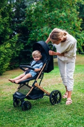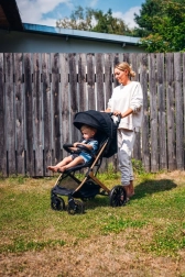La poussette dispose de roues maniables, anti-crevaison, assurant le confort. Grâce à leur grande taille – 10" – elles sont idéales même dans les conditions les plus difficiles. Le frein central de la MoMi ESTELLE DAKAR est très facile à utiliser. Sous la poussette se trouve un grand panier pratique d’une capacité de charge jusqu’à 2 kg.