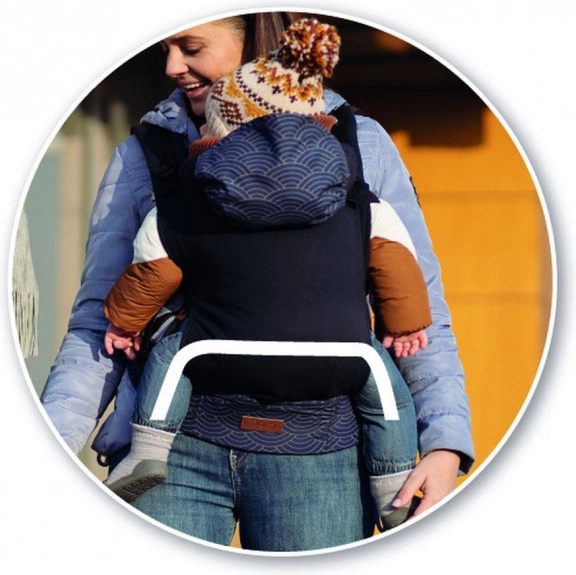 Pour les parents, le porte-bébé offre une excellente répartition du poids grâce à sa large ceinture lombaire et à ses bretelles souples. S’y ajoutent un réglage en 6 points pour suivre la croissance de l’enfant, une capuche amovible contre le vent et le soleil, des protège-boucles pour plus de confort et une poche pratique pour les petits objets.