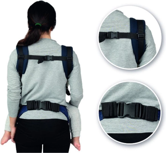 La large ceinture lombaire et les bretelles douces et rembourrées répartissent uniformément le poids de l’enfant. Les protège-boucles augmentent le confort même lors d’un portage prolongé.