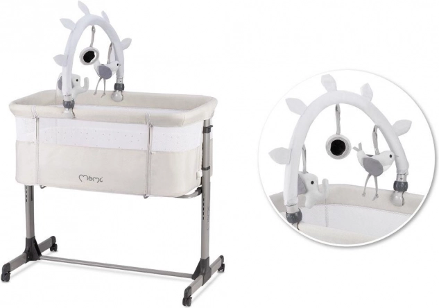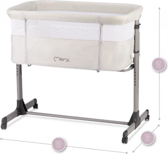 - Le lit bébé MoMi REVO est également équipé de roulettes pour un déplacement facile lorsque vous en avez besoin. Les roulettes disposent d’un frein pour maintenir la stabilité lorsque le lit est utilisé en mode cododo.