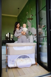 MoMi SMART BED est un produit 4 en 1. Vous pouvez l’utiliser comme lit indépendant ou comme lit cododo pour les parents. Grâce à ses dimensions compactes et à son faible poids, le MoMi SMART BED peut aussi servir de lit de voyage, et pour les enfants plus grands, de parc.