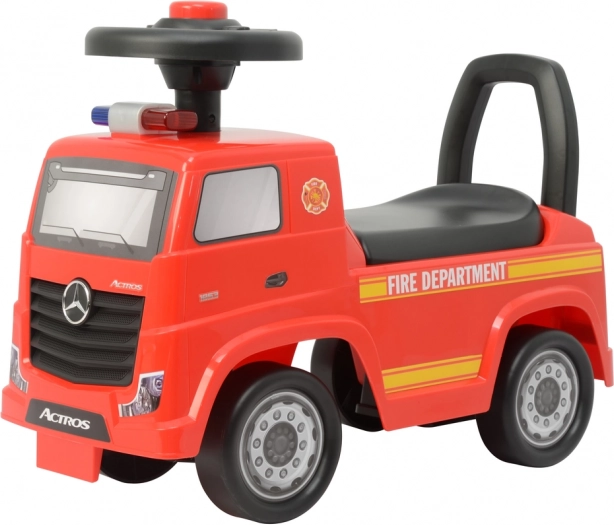 Un porteur pour enfants stylé MERCEDES ACTROS en version rouge offre un jeu sûr et favorise le développement de la motricité. Sa construction en plastique légère et résistante, son siège confortable avec dossier et sa direction facile au volant en font un excellent compagnon de conduite à la maison comme en extérieur. Les détails réalistes tels que jantes, phares et calandre stimulent l’imagination des enfants et le jeu de rôle des pompiers.