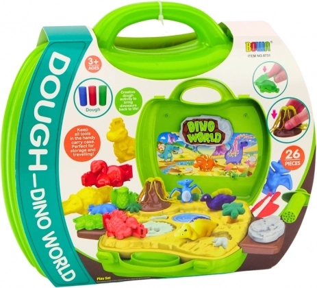 Pâte à modeler monde des dinosaures dans une valisette – moules et outils, vert