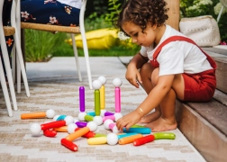 Le tout est rangé dans un conteneur robuste. Le couvercle rouge et le fond servent de plaques de base, permettant de construire directement dessus. Ce set est un excellent choix pour les familles comme pour les collectivités – crèches ou espaces de jeux.