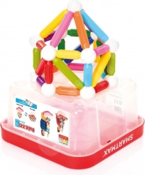Ce conteneur SMARTMAX étendu propose 70 pièces magnétiques robustes : 38 tiges courtes, 12 tiges longues et 20 billes métalliques. Les pièces sont grandes, durables et sûres pour les tout-petits – idéales pour les premières découvertes magnétiques comme pour des constructions spectaculaires. La boîte en plastique transparente avec couvercle solide peut être utilisée des deux côtés comme base de construction.