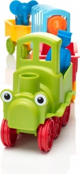 Les enfants assemblent une locomotive et trois wagons, ajoutent deux animaux en trois parties chacun et un conducteur. Les différentes parties des animaux peuvent être combinées librement – on obtient ainsi des animaux réalistes ou imaginaires, développant la pensée créative et la coordination œil–main.
