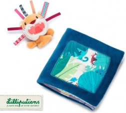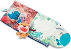 Le livre "Jack rugit" de la marque Lilliputiens est idéal pour les tout-petits. Chaque page présente un animal différent, comme une girafe, un rhinocéros ou un crocodile, avec des sons décrits qu'ils produisent. Les illustrations colorées et les pages douces favorisent la narration créative.