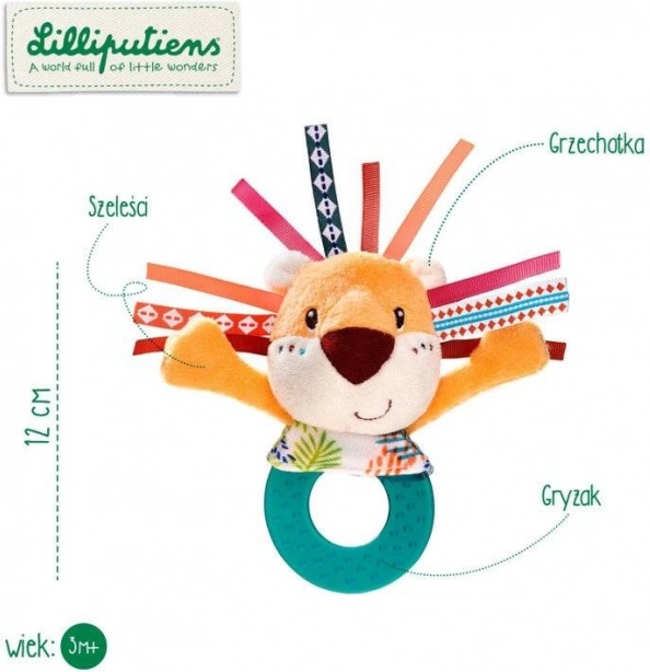 Le hochet est fabriqué en peluche douce et complété par des rubans colorés joyeux qui forment une crinière, stimulant les sens visuels et tactiles.
