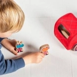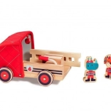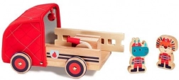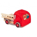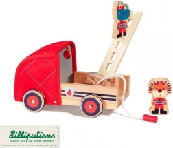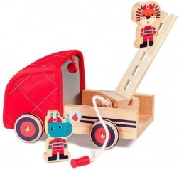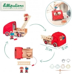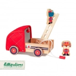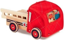 Ce set de pompier bien pensé offre des heures de jeu et d’apprentissage. Le camion possède un bras rotatif sur la benne, sur lequel se fixe le tuyau à corde enroulable; l’échelle en bois se place facilement dans une encoche dédiée et une cloche est dissimulée dans la cabine souple. Deux figurines en bois – Rhinocéros Marius et Lion Jack – invitent au jeu de rôles, aux missions de sauvetage et à l’invention d’histoires.
