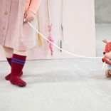 Grâce au mécanisme à tirer, le jouet se déplace et favorise le développement de la coordination et de la motricité fine chez les enfants.
