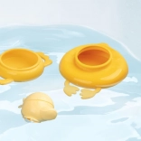 Les éléments de la pyramide avec le canard Gaspard flottent à la surface et invitent les enfants à construire directement dans la baignoire. Ils entraînent la patience, la coordination et la motricité fine – de façon ludique.