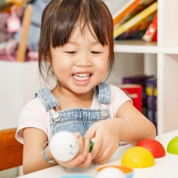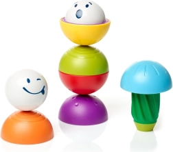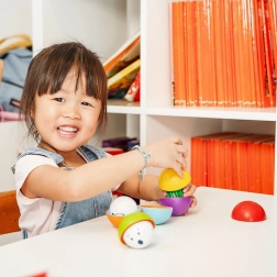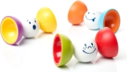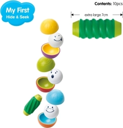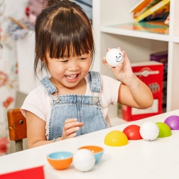 Des visages joyeux et des couleurs vives motivent les enfants à assembler, trier et jouer à cache-cache avec les petites balles.