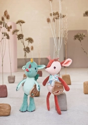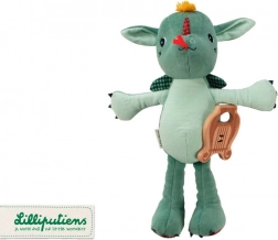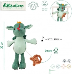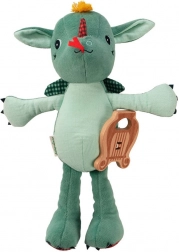 Le dragon en peluche Joe de Lilliputiens est conçu comme le premier ami idéal pour votre enfant. Avec sa hauteur de 32 cm et sa lyre en bois, il sert non seulement de jouet, mais aussi de compagnon musical qui, une fois tiré, joue la mélodie traditionnelle « Green Sleeves ». Ce dragon musical possède de petites griffes, de petites ailes à carreaux et une apparence adorable avec des détails marqués qui stimulent l’imagination des enfants.
