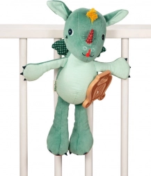 Grâce aux boucles pratiques, le dragon peut être fixé au lit ou à la poussette, ce qui facilite son transport et permet de l’utiliser comme décoration.