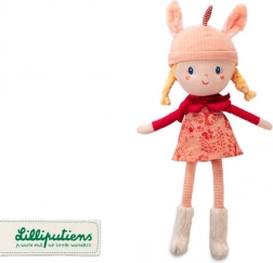 La poupée Lena mesure 30 cm et est fabriquée dans des textiles agréablement doux qui invitent aux câlins. Deux nattes blondes, des yeux, un nez et un sourire brodés garantissent un jouet sécurisé et résistant même pour les plus petits. Son style est complété par une robe au motif forestier, une écharpe chaude et une coiffe amovible avec oreilles et corne – un clin d’œil ludique à la licorne de Lena.