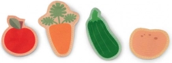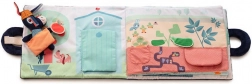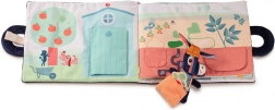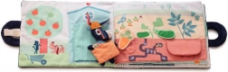 Récoltez une pomme, une courgette, une carotte et une pomme de terre, récupérez l’œuf, le lait, la laine et le miel. Les éléments amovibles à scratch et les petites poches cachées invitent à l’exploration et exercent la motricité fine.