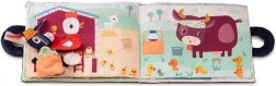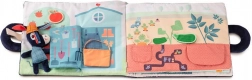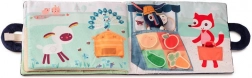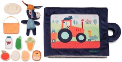 Ce livre d’activités tout doux sur le thème de la ferme accompagne les enfants tout au long de la journée d’Ignace l’âne – du verger au potager jusqu’au marché. Les pages proposent des accessoires amovibles à scratch : pomme, courgette, carotte, pomme de terre, œuf, bouteille de lait, flocon de laine et miel parfumé. Certains éléments sont cachés dans des petites poches ou sous des volets, permettant aux petits explorateurs d’exercer leur motricité fine, la coordination œil–main et la logique. Sur la dernière page, les enfants placent correctement chaque élément sur l’étal du marché selon sa forme et sa couleur.