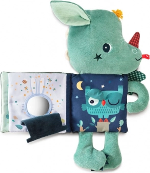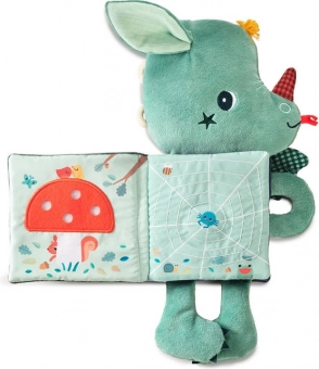 Adorable doudou avec livre en tissu intégré, il offre aux enfants dès 3 mois de nombreuses stimulations et beaucoup d’amusement. Le personnage du dragon Joe tient un livre tout doux avec des animaux de la forêt et des motifs magiques ; les pages froissent, cliquettent, incluent un miroir flexible et la baguette magique sur la couverture brille même dans le noir. La qualité de fabrication, les matériaux sûrs et la stimulation sensorielle en font un cadeau idéal et un compagnon pour l’endormissement.