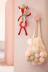 Chaque élément est réalisé dans une matière différente (p. ex. cordage, doux « frou-frou »), ce qui favorise la perception tactile. Les longues pattes, oreilles, bois et rubans invitent à explorer, presser, saisir et secouer. La chaîne se fixe facilement grâce aux cordelettes près de la tête – sur la poussette, le siège auto ou le porte-bébé. Le jouet est de haute qualité, sûr et lavable en machine sur cycle délicat à 30 °C.