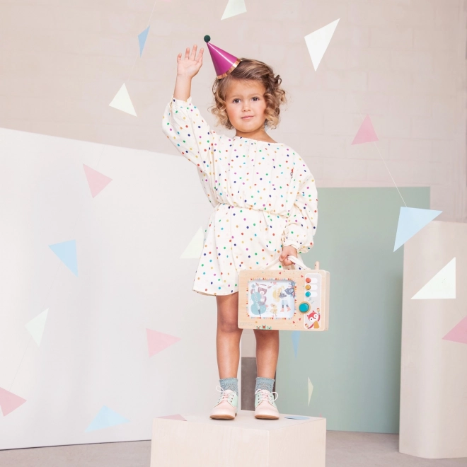 Cette boîte à musique originale de Lilliputiens est conçue pour les plus petits explorateurs. Il suffit de tourner le bouton de commande et un petit orchestre lance une mélodie entraînante, pendant laquelle les illustrations s’animent. Les enfants exercent ainsi naturellement la coordination œil-main, l’ouïe et la vue.