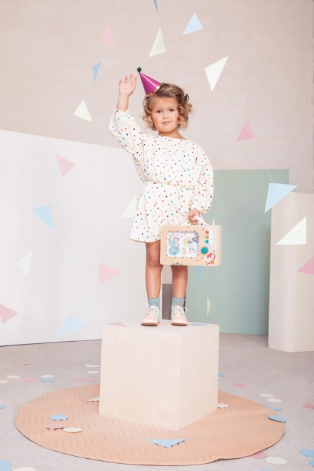 Avertissement : Avant utilisation, retirez les attaches en plastique, les étiquettes et les emballages. L’emballage n’est pas un jouet et peut présenter un risque d’étouffement. Le produit est partiellement fabriqué à la main – chaque pièce peut présenter de légères différences. Convient aux enfants dès 10 mois. Nettoyez en surface et suivez les pictogrammes. Conservez l’emballage pour une utilisation ultérieure.