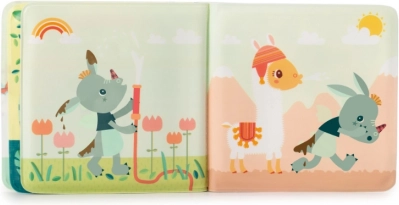 Grâce à son matériau imperméable, le livre est idéal pour jouer et apprendre dans l'eau.