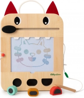 La tablette est fabriquée en bois et contreplaqué et offre une conception robuste adaptée au jeu quotidien. Si le dessin ne réussit pas, il suffit d’utiliser le museau « effaceur » de Louis et la surface est prête pour de nouvelles idées. Les cartes de jeu se rangent à l’arrière, pour garder l’ensemble bien organisé.