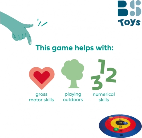 Le jeu favorise les compétences motrices, la coordination œil-main et les bases des mathématiques lors du comptage des points. Idéal pour les maternelles, centres périscolaires, camps et jeux à la maison dans le jardin.