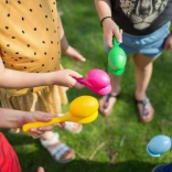 Le relais à l’œuf est un jeu de mouvement simple et captivant pour enfants et adultes. Les joueurs portent un « œuf » coloré dans sa coquille sur une cuillère en plastique et tentent de parcourir le circuit sans le faire tomber. Un excellent choix pour les fêtes d’enfants, les jardins d’enfants, les camps et les après-midis en famille en plein air ou au gymnase.