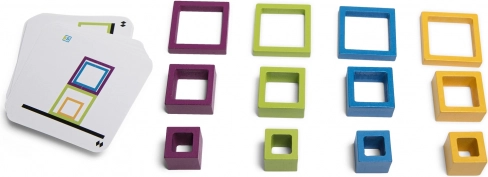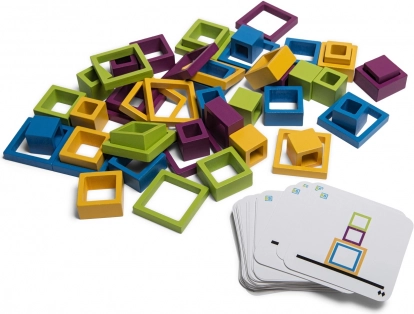 Le jeu comprend différents cadres colorés, élément clé pour résoudre des énigmes logiques, avec la possibilité de les ajuster selon les cartes modèles.