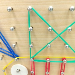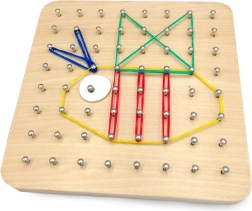 Les enfants peuvent créer des formes géométriques de base, apprendre la symétrie et les motifs, ou concevoir des images uniques. Le Geoboard est également un excellent outil pour l'apprentissage du comptage et de la mesure.