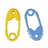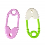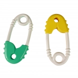 Ce hochet et anneau de dentition coloré en forme de grande épingle est conçu pour les tout-petits. Il combine un effet hochet stimulant avec des textures souples pour apaiser les gencives durant la poussée dentaire. Sa forme ergonomique avec poignée circulaire se tient facilement même par de petites mains.