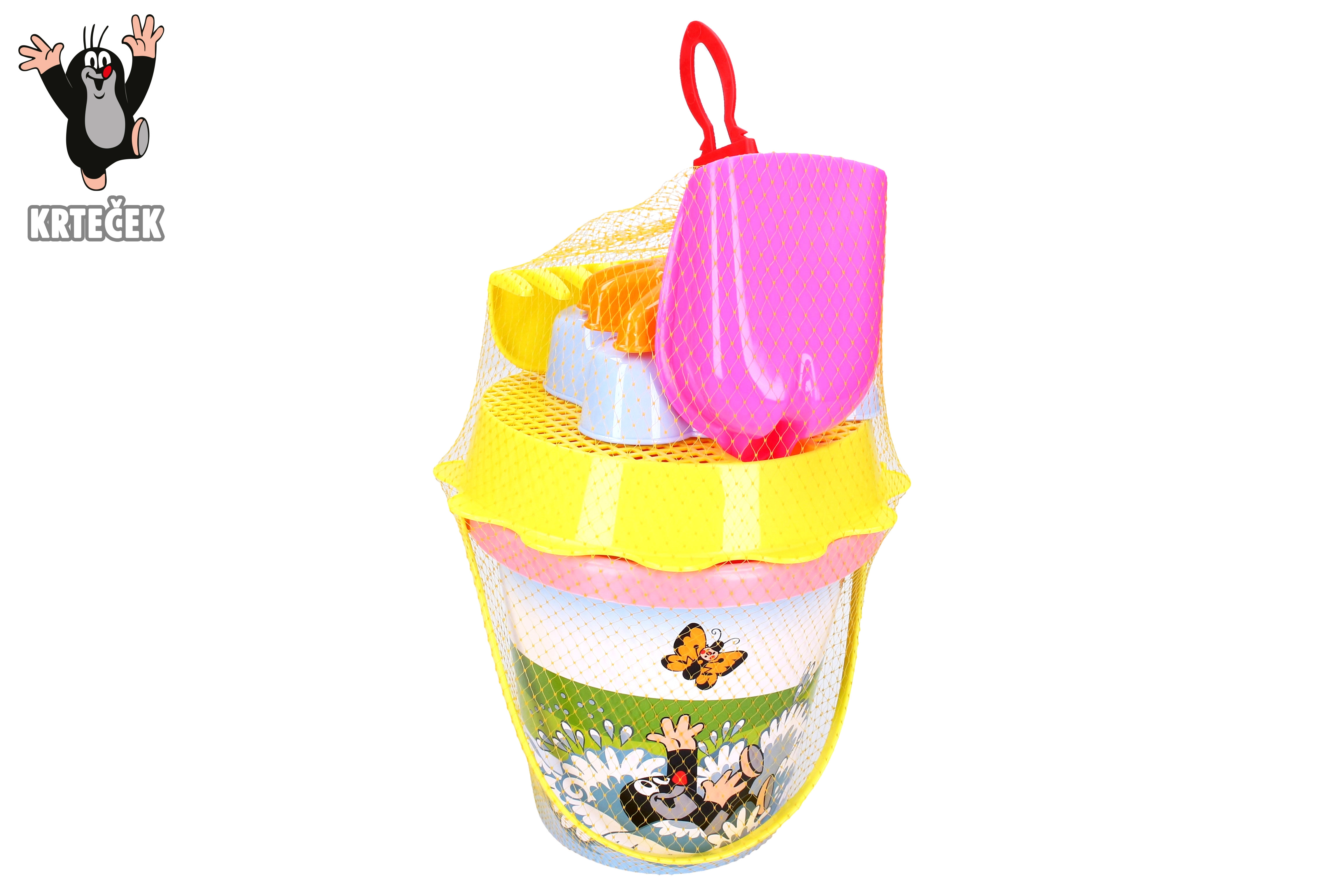 Construire des châteaux et faire des petits moules de sable plaît à presque tous les jeunes enfants. Avec cet ensemble rose à motif de la Petite Taupe, le jeu sera un vrai plaisir ! Contenu de l’emballage : seau 1,5 l crible pelle râteau 2 moules Âge recommandé : à partir de 3 ans