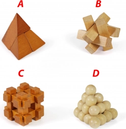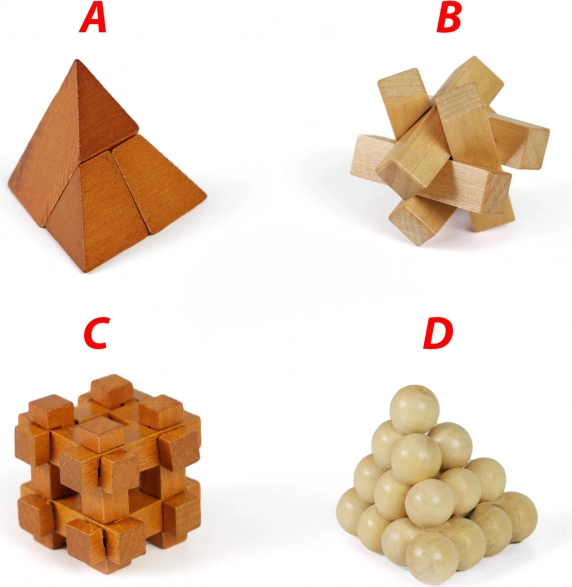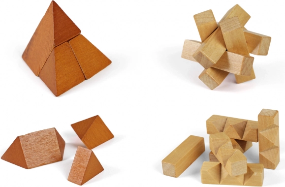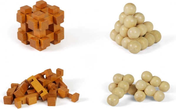 Casse-tête en bois élégant pour tous les amateurs de jeux intelligents. Fabriqué à partir de bois de haute qualité, il offre du plaisir sous quatre variantes différentes et est emballé dans une boîte cadeau. Idéal pour l'entraînement de la mémoire et de la pensée logique.