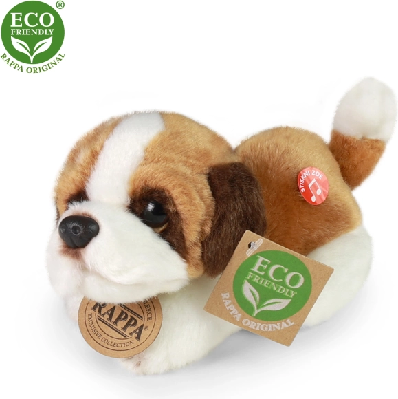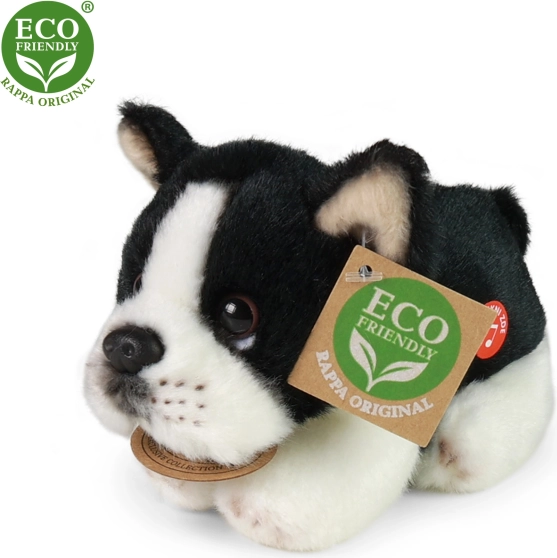 Adoptez ce charmant chien en peluche d'une longueur de 15 cm, fabriqué à partir de matériaux éco-responsables et ainsi respectueux de l'environnement.