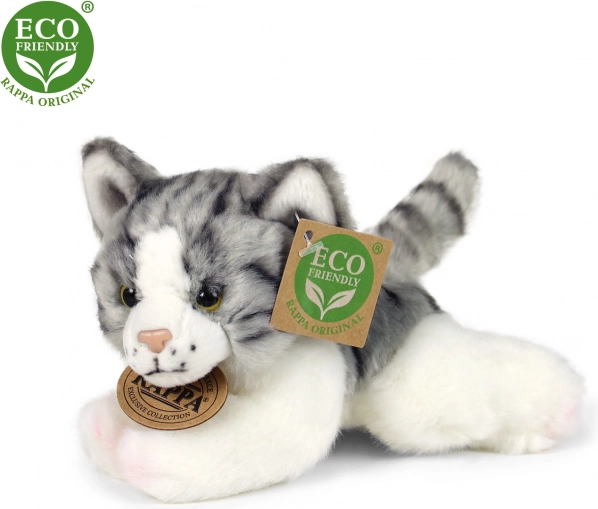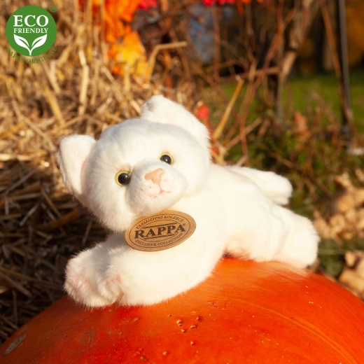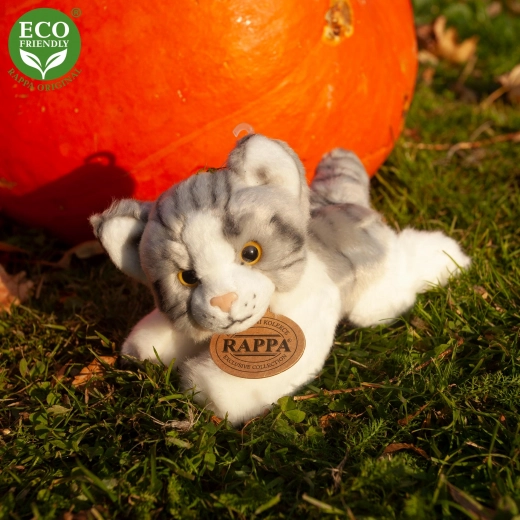 Magnifique chat en peluche de la collection exclusive RAPPA, fabriqué à partir de matériaux écologiques. Le rembourrage en bouteilles PET recyclées est au toucher indiscernable d’un rembourrage classique.