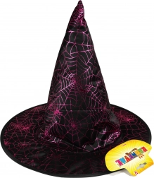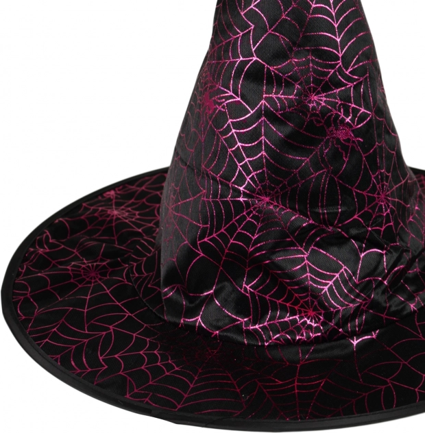 Le joyeux chapeau de sorcière est un excellent accessoire pour le carnaval ! Le chapeau noir est orné de toiles d’araignée violettes et scintillantes.