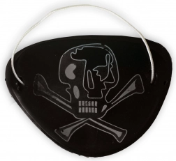 Cache‑œil léger en plastique avec crâne et tibias croisés symboliques pour un rendu pirate fidèle.
