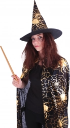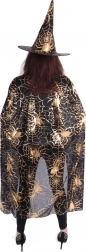 Une cape et un chapeau de sorcier stylés avec un imprimé doré brillant de toiles d’araignée transforment chaque soirée déguisée en événement magique. Grâce à la coupe universelle et à la matière légère, l’ensemble se porte confortablement et se combine facilement avec d’autres accessoires. Idéal pour Halloween, les bals masqués, le cosplay et les séances photo à thème.