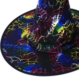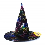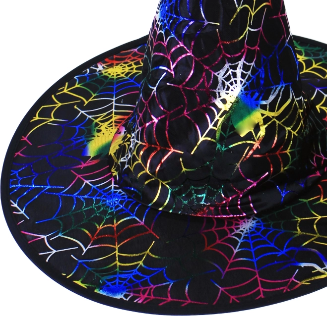 Apportez une touche unique à votre costume d’Halloween ou de carnaval avec ce chapeau de sorcière noir élégant orné de toiles d’araignée colorées. Léger et souple, il se porte confortablement, tandis que le large bord et la pointe conique créent une silhouette iconique.