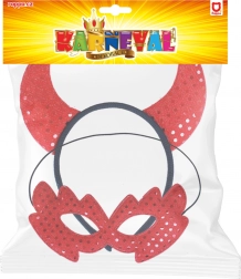 Faites passer votre costume au niveau supérieur avec un ensemble élégant qui combine des cornes rouges voyantes et un loup textile léger. Les paillettes scintillent à chaque mouvement et garantissent que vous ne passerez pas inaperçue sur la piste.